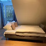 Stilvolles ziemlich großes Zimmer mit einem Flachbildfernseher mit Kabelkanälen, einem elektrischen Wasserkocher und einem Radio. Eine wirklich ruhige Lage in einem Park. Vergessen Sie nicht, das Viertel Oberneuland zu erkunden...